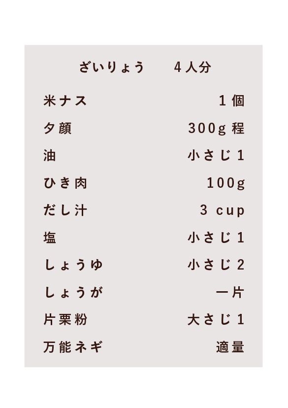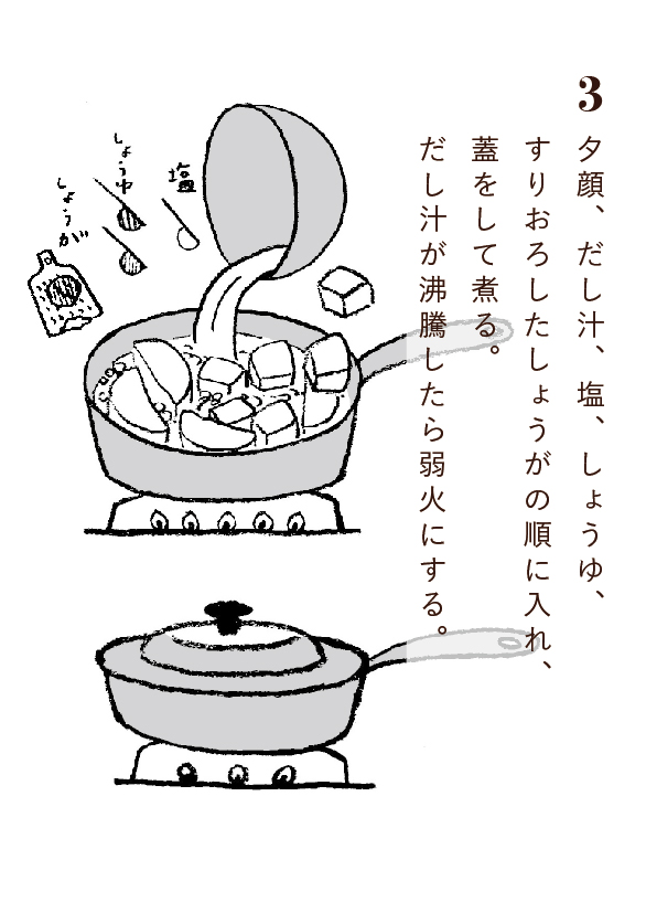 米ナスと夕顔のしみしみ煮【ある夜、どこかの台所で。】