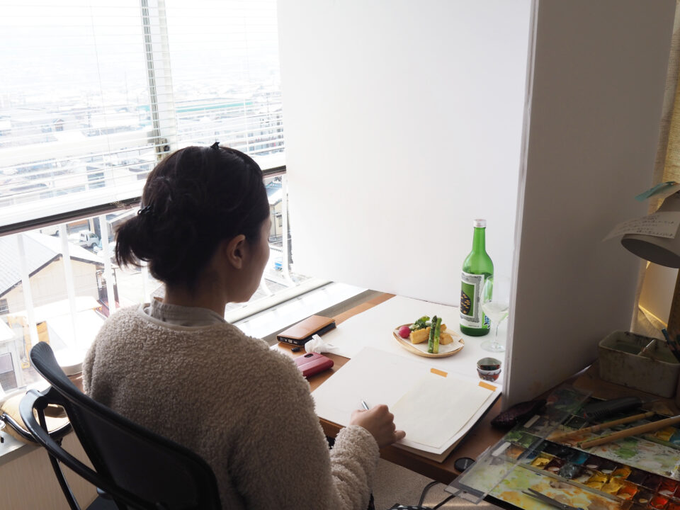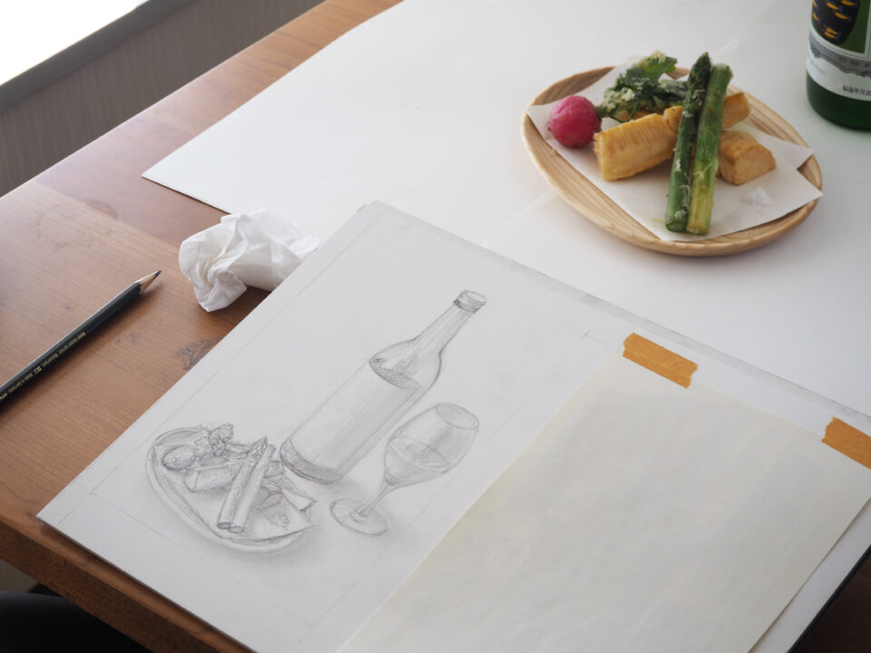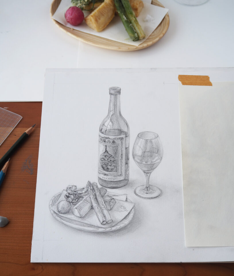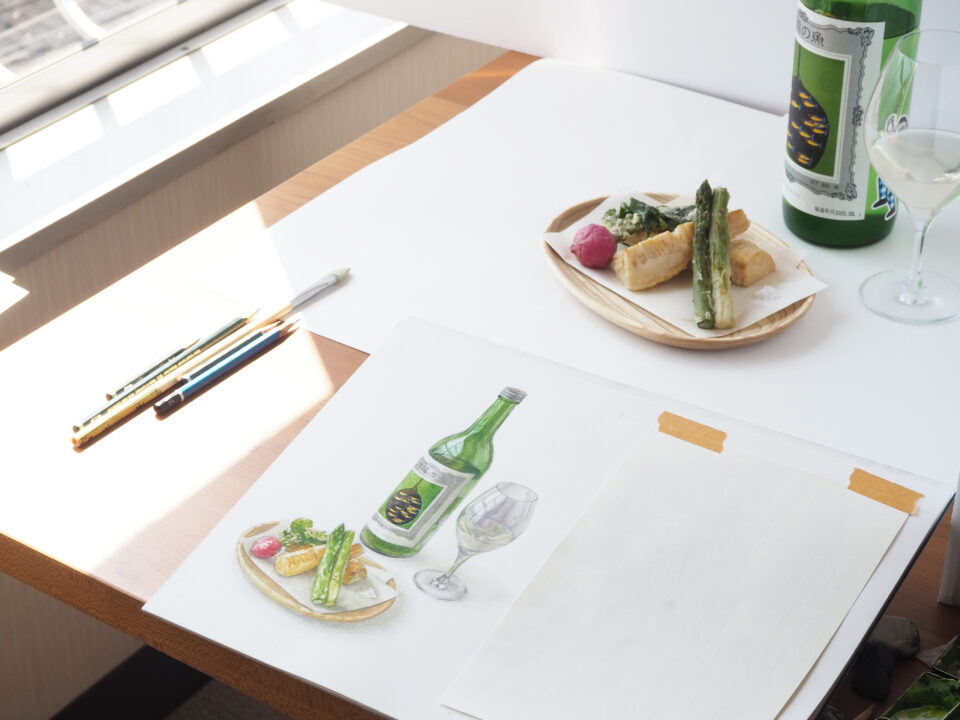 「食」を描く画家の制作風景 〜 日本酒と肴、漫画 〜