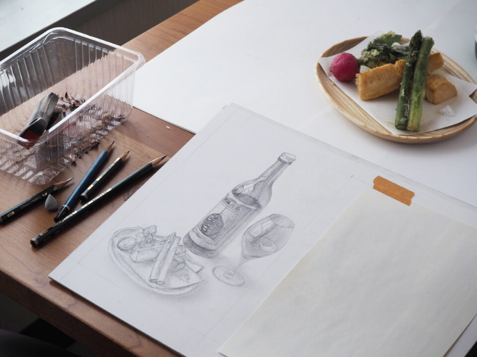 目の前にモチーフを置いて、質感や重さ、こちらからは見えない裏側や周りの空気を感じながら描くことで、絵に厚みが出る感覚があります。