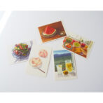 裏面にメッセージを書き、85円切手を貼ってハガキとして郵送する他、夏ギフトに添えるメッセージカードとして、またはお部屋に飾って猛暑日のおうち時間を豊かなものにしたりと幅広くお楽しみいただけます。