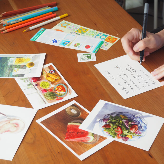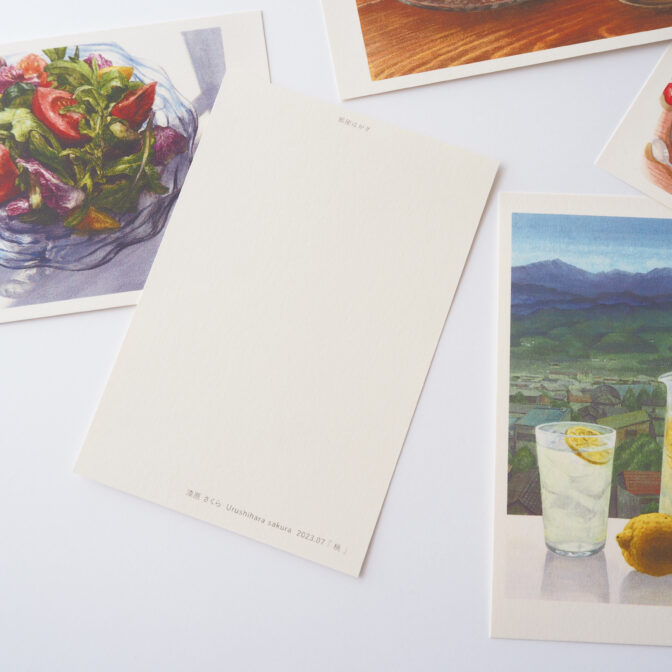 味や香り、遠い夏の想い出までがふと心に蘇るような漆原さくらの食べ物の絵は、受け取った瞬間に笑顔が生まれ、相手とのコミュニケーションや心の繋がりを豊かにします。