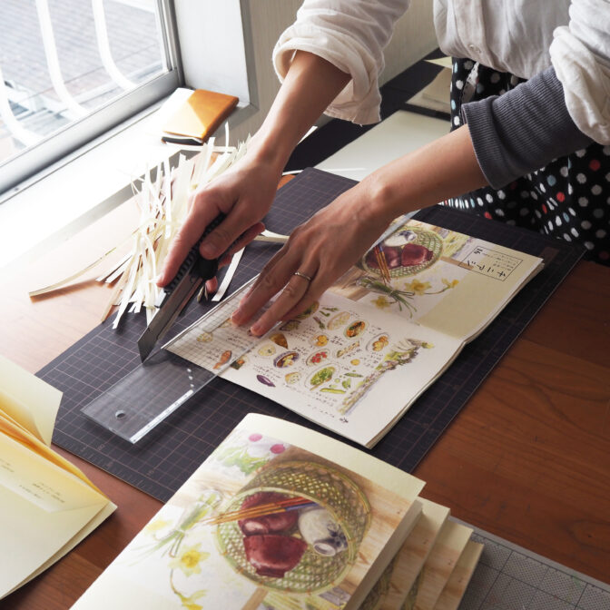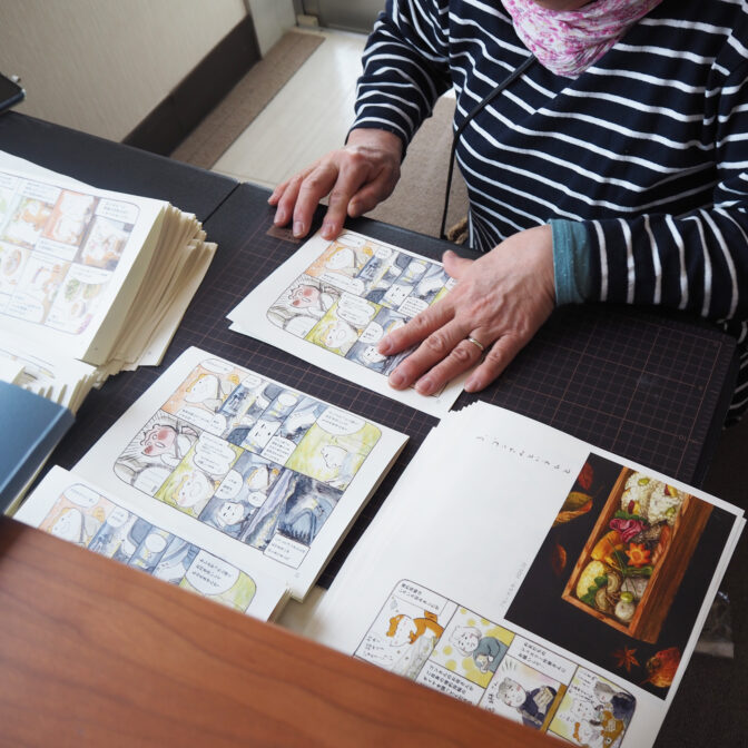 自分で絵を描き、文章を綴り、パソコンで編集して、自宅の印刷機で印刷。手で製本、梱包まで行っています。